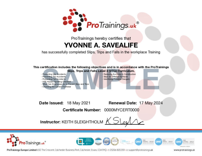 Slip, Trips and Falls training are required in most workplaces to identify where employees can get hurt. Understanding the risks of these easy to identify problems will result in less un-necessary injuries at work. This course is ideal for any workplace as the risks can be applied to any environment.