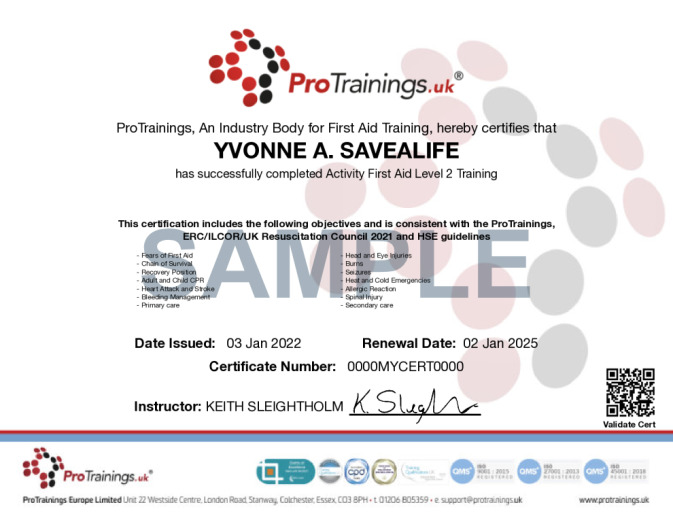 The purpose of the Level 2 Award in Activity First Aid is to provide the learner with the skills, knowledge and understanding of first aid to provide appropriate care and manage life-threatening conditions, illness and injuries sustained in an active environment. This is achieved through the understanding of the general duties, responsibilities and treatment principles of first aid.