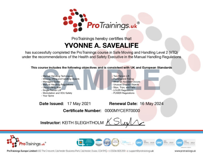 Safe Moving and Handling Level 2 (VTQ)