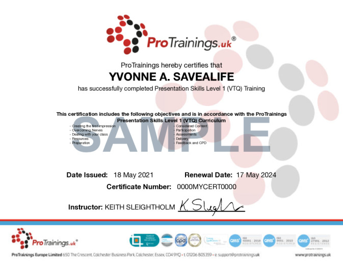 The content of this and all our courses has been independently certified as conforming to universally accepted Continuous Professional Development (CPD) guidelines and come with a Certified CPD Statement as well as a ProTrainings Certificate and for online courses an Evidence Based Learning statement.
