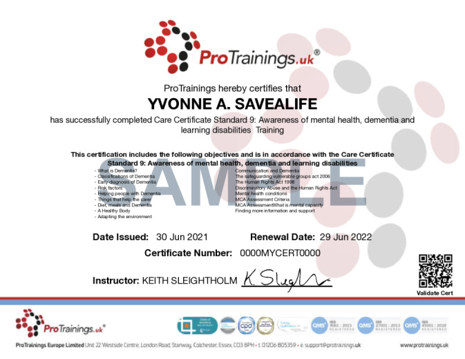 Study online for the knowledge units of the Care Certificate Standard 9 "Awareness of mental health, dementia and learning disabilities". This short course covers all you need to learn to complete this knowledge unit. You then complete the practical units in your workplace.