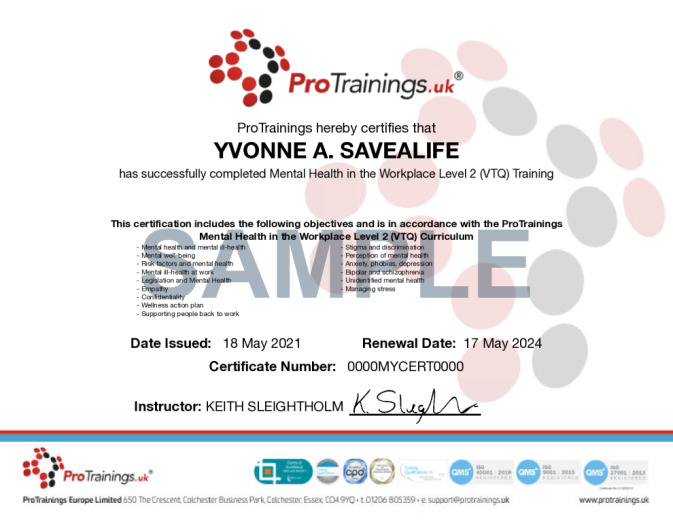 The HSE has made an announcement that you do not have to just have one title to your mental health qualification. Mental health in the workplace and first aid for mental health are the same as far as the HSE are concerned. ProTrainings offer three levels of course and it can be taken as online, blended or class courses nationwide.
