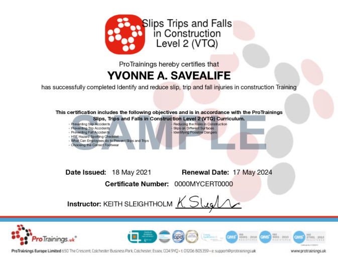 Slips, Trips and Falls in Construction Level 2 (VTQ)