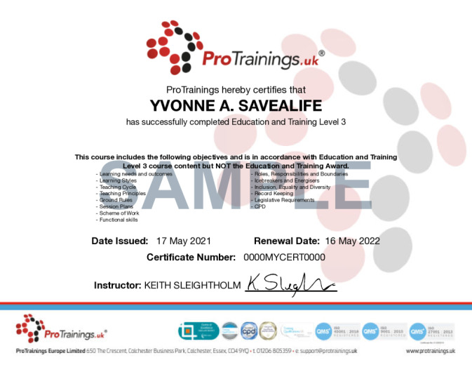 Anyone can take this online course but for the full Award in Education and Training, the minimum age is 19 years old and completing our full Award in Education and Training qualifications, allow you to offer some of our ProTrainings classroom courses. When you complete the full course it also allows learners to commence their professional development within the teaching profession.