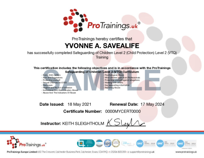 This course is aimed at training individuals who work with children to ensure they know how to identify and report possible cases of abuse and neglect. Children are at risk in many environments and training will ensure understanding of the problem, avoiding possible situations and dealing with abuse and neglect once identified.